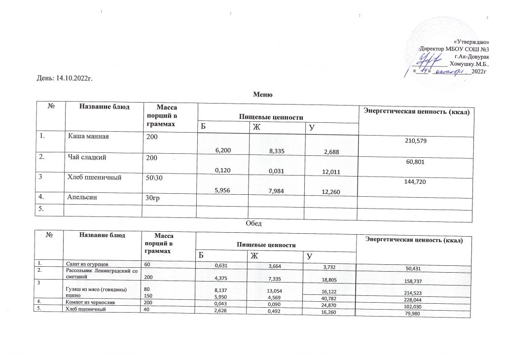 14.10.2022 (завтрак и обед)