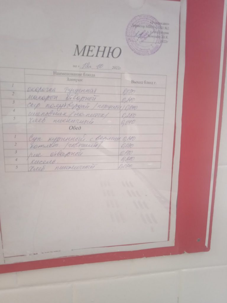 12.10.2022 (завтрак и обед)